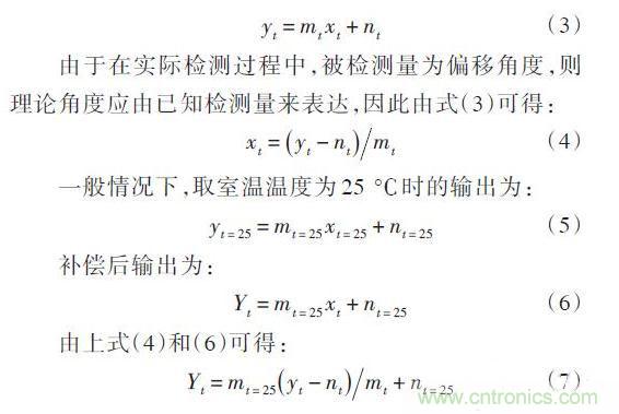 傳感器未經(jīng)溫度補(bǔ)償時(shí)的輸出為y = mx + n ,即在t ℃時(shí),無補(bǔ)償輸出為: